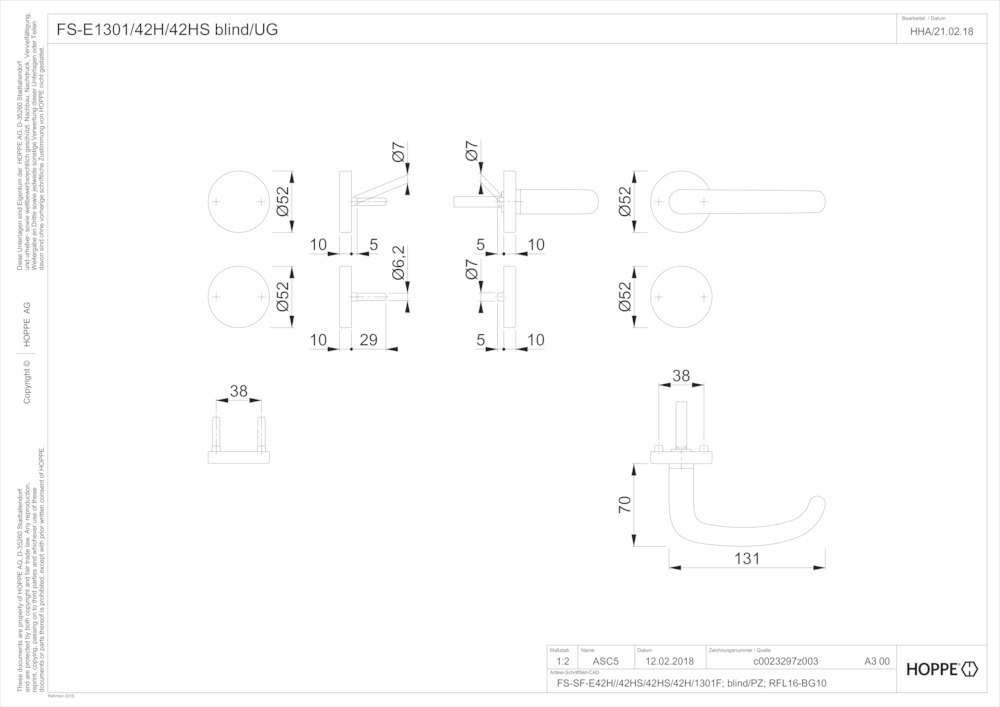 Produktinformationen "HOPPE Standflügelgarnitur San Francisco FS-E1301/42H/42HS,BL/UG,9,F69,TS 50-75"