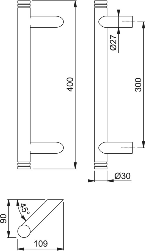 Produktinformationen "HOPPE Stoßgriff E5012DR,Befestigungsabstand 300,Länge 400,Durchmesser 30,F69"