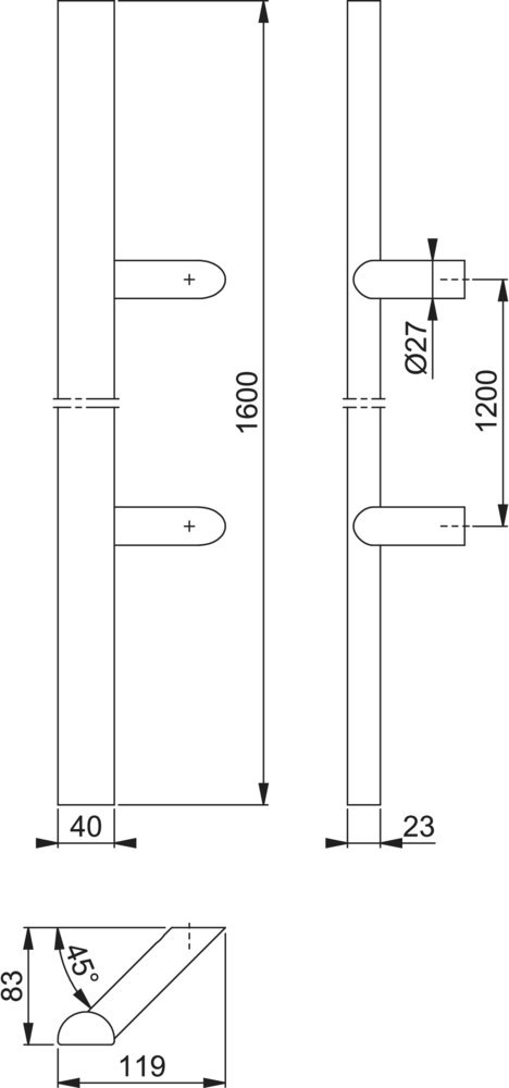 Produktinformationen "HOPPE Stoßgriff E5092,Befestigungsabstand 1.200,Länge 1.600,Durchmesser 40x23,F9714M"