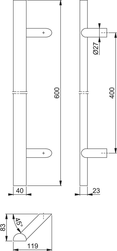 Produktinformationen "HOPPE Stoßgriff E5092,Befestigungsabstand 400,Länge 600,Durchmesser 40x23,F69"