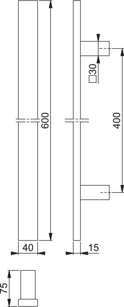 Produktinformationen "HOPPE Stoßgriff E5726,Befestigungsabstand 400,Länge 600,Durchmesser 40x15,F69"