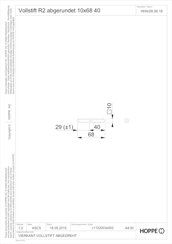 Produktinformationen "HOPPE Vierkantstift R2, 10x68mm verzinkt"