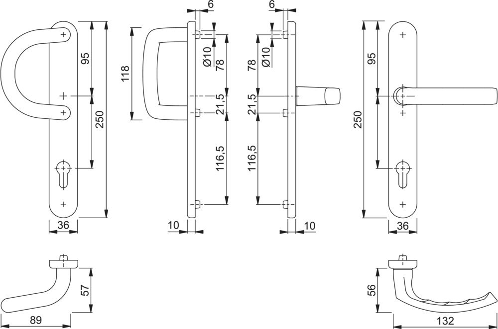 | Form Türgriff (außen): | Stoßgriff, gebogen |