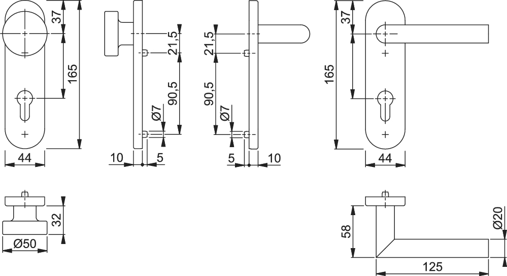 | Drückerbefestigung: | Wechselstift mit Rolle |