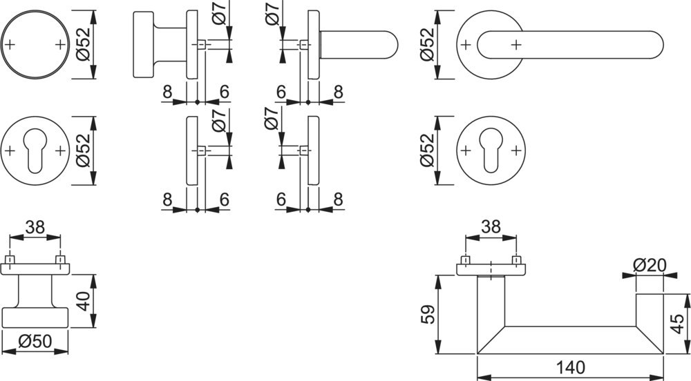 | Höhe Schlüsselrosette (außen): | 8.00 MMT |