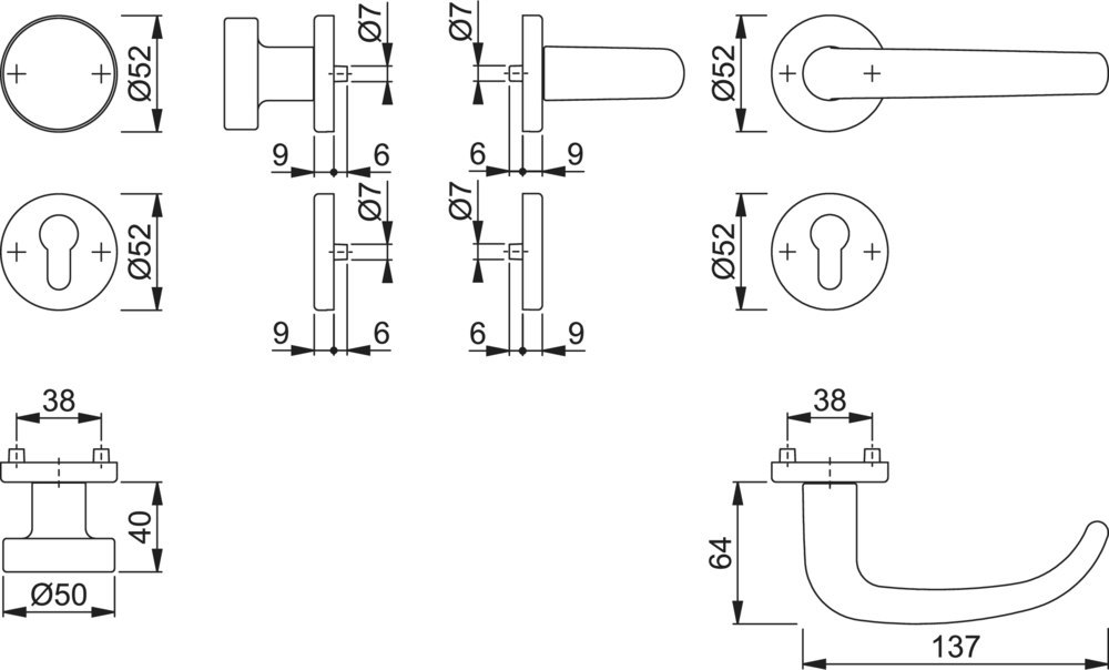 Durchmesser Schlüsselrosette: 52.00 MMT