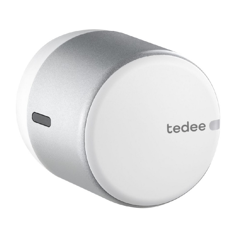 Der leistungsstarke Komfortantrieb ist mit einem Durchmesser von nur 57 Millimetern kaum größer als ein Türknauf und integriert sich so spielend leicht in das Gesamtbild der Tür. Das Gehäuse ist aus hochwertigem Kunststoff im edlen Design gefertigt. Seine Bauart und die verwendeten Materialien sorgen dafür, dass das Motorschloss während des Betriebes besonders leise ist. Tedee GO wird durch drei CR123A/R-Batterien mit Strom versorgt, die Batterielaufzeit beträgt im Durchschnitt etwa sechs Monate, wenn das Schloss bis zu acht Mal am Tag benutzt wird.