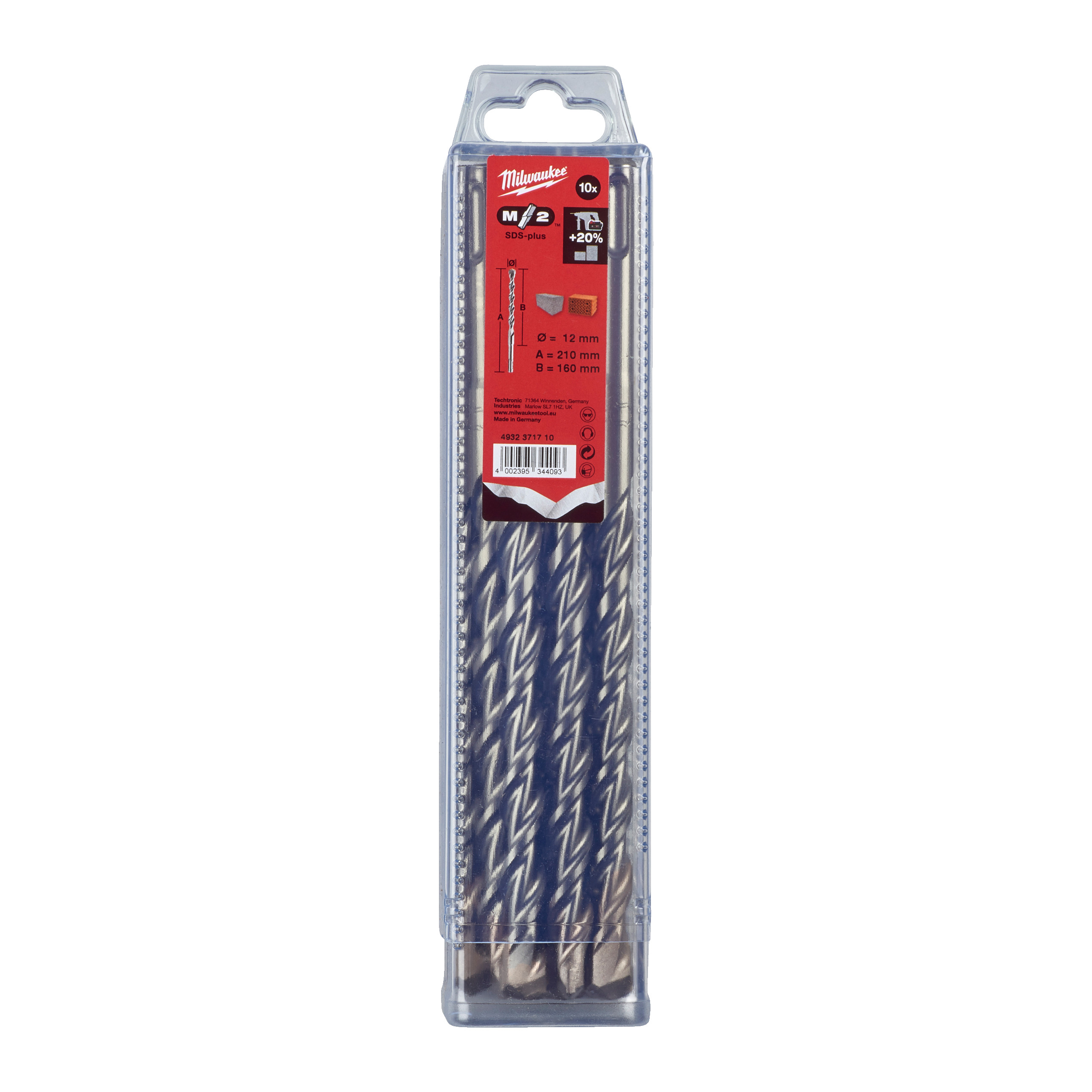 Milwaukee Hammerbohrer 12 x 210 mm, SDS-Plus 2-Schneiden M2 SDS-Plus, 10er-Pack