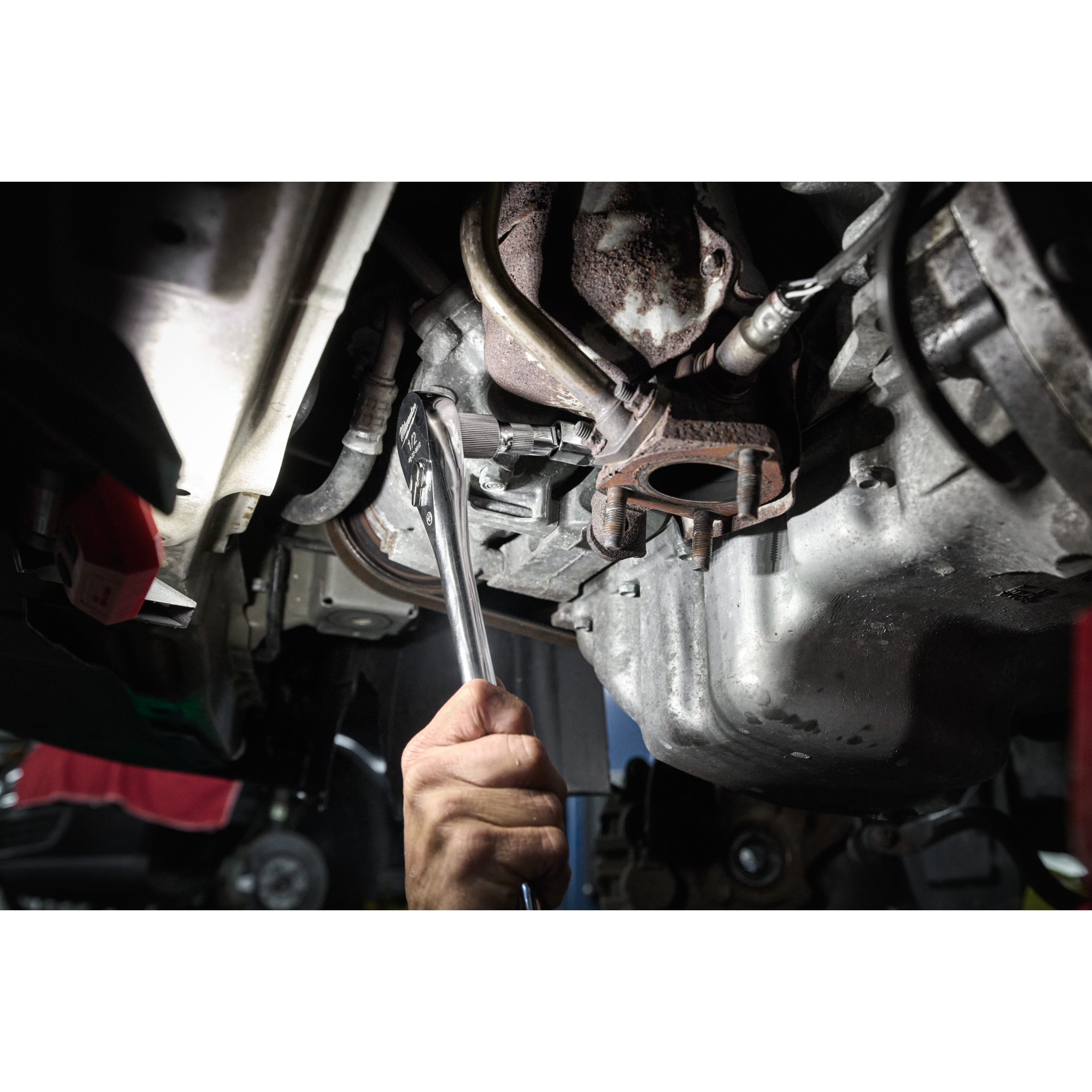 Produktinformationen Die Schwenkfunktion bietet idealen Zugang in enge Bauräume und kann auch als Standardverlängerung verwendet werden Geriffelter Greifbereich für mehr Grip bei Arbeiten mit den Händen Hochwertige Verchromung bietet idealen Rostschutz Gestempelte Größenangabe für gute Identifizierung