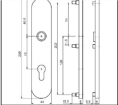 Produktinformationen "OGRO Langschild PR 7021L, oval, 220x44 mm, mit Hochhaltemechanismus, PZ gelocht, 72 mm Entfernung, 24.5 mm ø DL - Edelstahl matt"