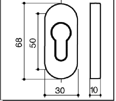 Produktinformationen "OGRO Schlüsselrosette PB6679-PZ, oval, 10 mm stark, Verschraubung verdeckt, Schraublochabstand 50 mm, PZ gelocht, Aluminium, weiß RAL 9016"