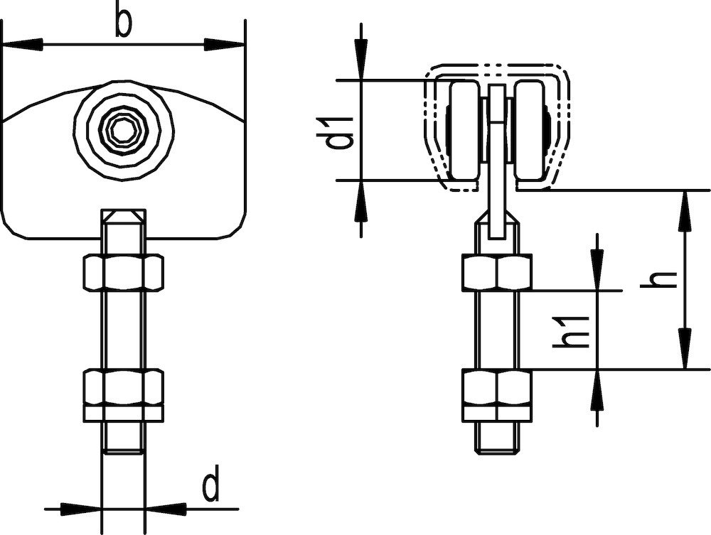 HELM Schiebetor Rollapparat, Modellnummer: 309, Ausführung: einpaarig, mit Pendelgelenk, Material Rollapparat: stahl, Oberfläche Rollapparat: galvanisch verzinkt, für Profil-Nr.: 300, Befestigungsart: zum Einhängen, Länge Rollapparat: 68 mm, Material Rollen: stahl, Gewindedurchmesser: M12, Verstellbarkeit: Höhenverstellbar