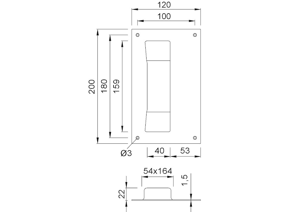 KWS Objekttür Schiebetürmuschel, Modellnummer: 5206, Lochung: ohne Lochung, Form: eckig, Material: stahl, Farbton: stahl, Oberfläche: galvanisch verzinkt, Befestigungsart: Zum Anschrauben, Anzahl Schraublöcher: 4 mm, Schraublochdurchmesser: 3 mm, Schraublochentfernung Breite: 100 mm, Schraublochentfernung Länge: 180 mm, Länge: 200 mm, Breite: 120 mm, Tiefe: 22 mm, Stärke: 1.5 mm, DIN-Richtung: DIN Links-Rechts, Türart: Schiebetür, Türwerkstoff: Holz