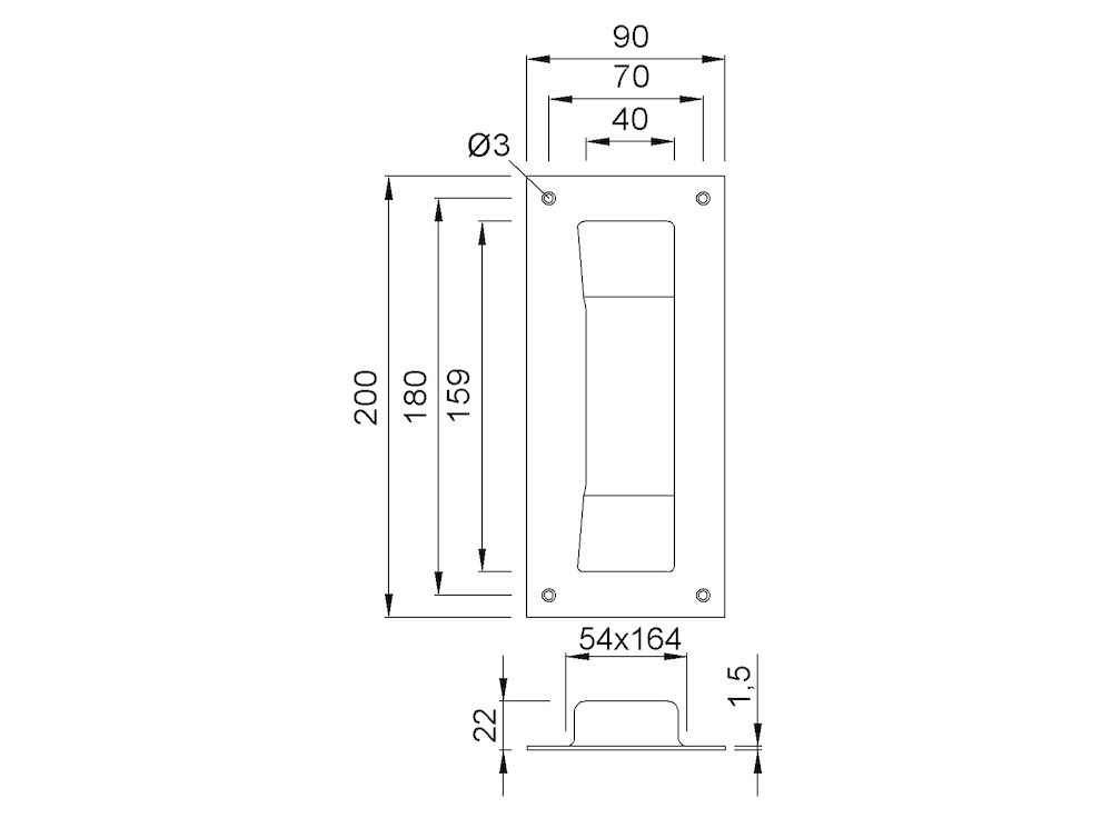 KWS Objekttür Schiebetürmuschel, Modellnummer: 5207, Lochung: ohne Lochung, Form: eckig, Material: stahl, Farbton: stahl, Oberfläche: galvanisch verzinkt, Befestigungsart: Zum Anschrauben, Anzahl Schraublöcher: 4 mm, Schraublochdurchmesser: 3 mm, Schraublochentfernung Breite: 70 mm, Schraublochentfernung Länge: 180 mm, Länge: 200 mm, Breite: 90 mm, Tiefe: 22 mm, Stärke: 1.5 mm, DIN-Richtung: DIN Links-Rechts, Türart: Schiebetür, Türwerkstoff: Holz