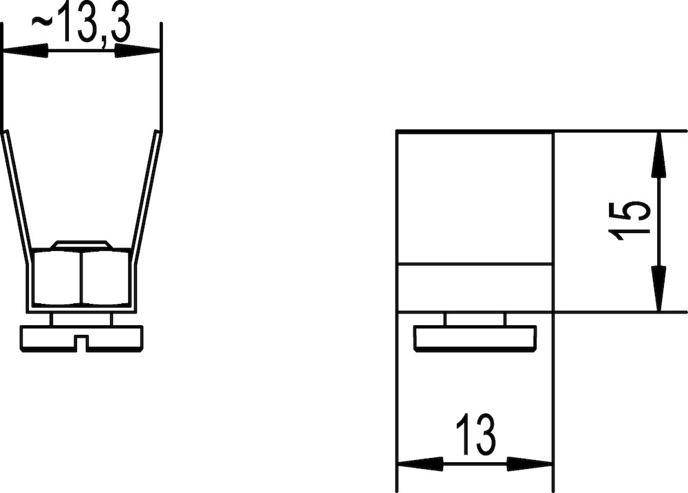 HELM Schiebetor Schienenstopper, Modellnummer: 13 P, für Profil-Nr.: 13, Material: stahl, Oberfläche: galvanisch verzinkt, Länge: 13 mm, Höhe: 15 mm, Zusatzinformation: Laufwegbegr. verh. Herausfahr. d. Rollappar. aus d. Schiene
