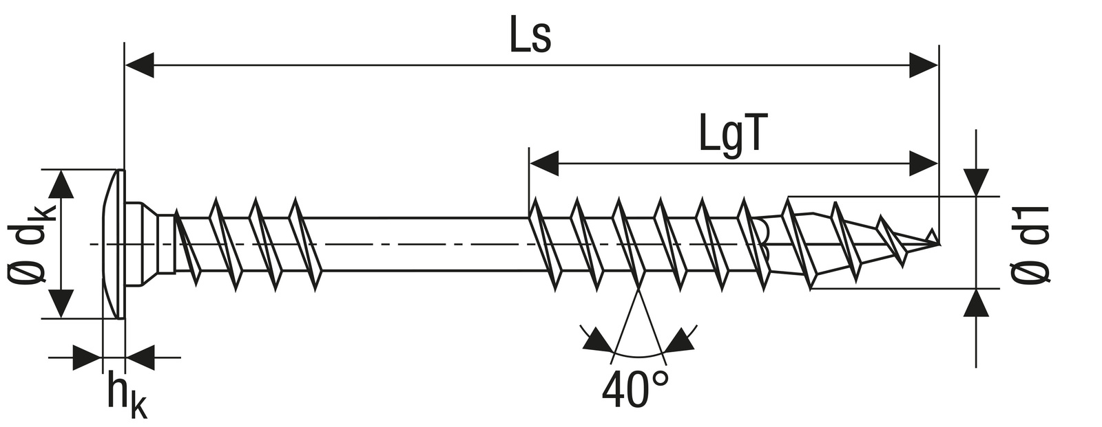 Das Fixiergewinde besteht aus einem Hauptgewinde, welches sich in die Unterkonstruktion einsetzt und dem Unterkopfgewinde. Dieses Unterkopfgewinde sorgt dafür, dass das Deckbrett auf der Unterkonstruktion unter allen Witterungsbedingungen sicher gehalten wird. Der glatte Schaft zwischen den Gewindeteilen nimmt die Bewegungen der Diele auf. Sie müssen nie wieder Holzdielen nachverschrauben, weil sie sich lösen oder zu stark knarren!