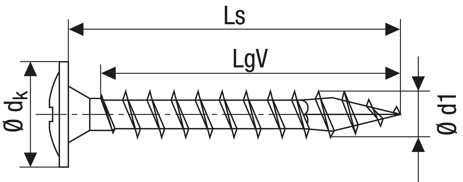 | Flacher Kopf vergrößert die Auflagefläche auf der Platte: | Flacher Kopf vergrößert die Auflagefläche auf der Platte, Höhere Kopfdurchzugskräfte |