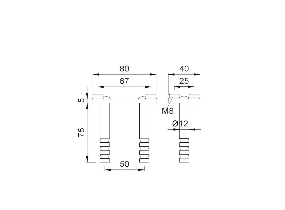 KWS Steindolle, Modellnummer: 1508, Ausführung: für Türfeststeller, Befestigungsart: zum Einmauern, Material: stahl, Oberfläche: Feuerverzinkt, Durchmesser: 12 mm, Länge: 80 mm, Schraubendurchmesser metrisch: m8, Plattenstärke: 5 mm