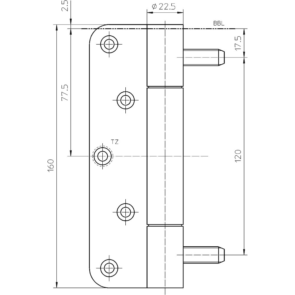 SIMONSWERK, Objekttür-Band, Modell: VARIANT®, Modellnummer: VN 3748/160, Bandkonstruktion: 2-teilig, Ausführung: als Umrüstband, DIN-Richtung: DIN Links-Rechts, Material: Edelstahl, Farbton: edelstahl, Oberfläche: matt gebürstet, Kopfausbildung: Flachkopf, Lagerung: verdeckt liegende, wartungsfreie, Axial-Radial-Gleitlager, Rollenlänge: 160 mm, Ergänzung: für Blindeinnietmutter, Verstellbar: fest, Rollendurchmesser: 22,5 mm, Materialstärke: 3,5 mm, Stiftdurchmesser: 10 mm, Tragkraft pro Flügel (1 x 2 m) bei zwei Bändern: 160 kg, Befestigungsart Flügelteil: zum Anschrauben, Höhe Flügelteil: 160 mm, Befestigungsart Rahmenteil: zum Eindrehen, Anwendung: Stahlzarge, Fräserdurchmesser: 24 mm, Befestigungsabstand Rahmenteil: 120 mm, Stiftausführung: innenliegend, verdrehsicher, Schraubstift, Schraubendurchmesser: 5 mm, Schraubenlänge: 50 mm, Anzahl Schraublöcher: 5 St., Türwerkstoff: Holz, Stahl, Funktionsbereich: Feuerschutz, Rauchschutz, Feuerbeständigkeit: Klasse 1, Korrosionsbeständigkeit: Klasse 5, Türausprägung: stumpfe Türen, kombinierbar mit: Blindeinnietmutter M 10