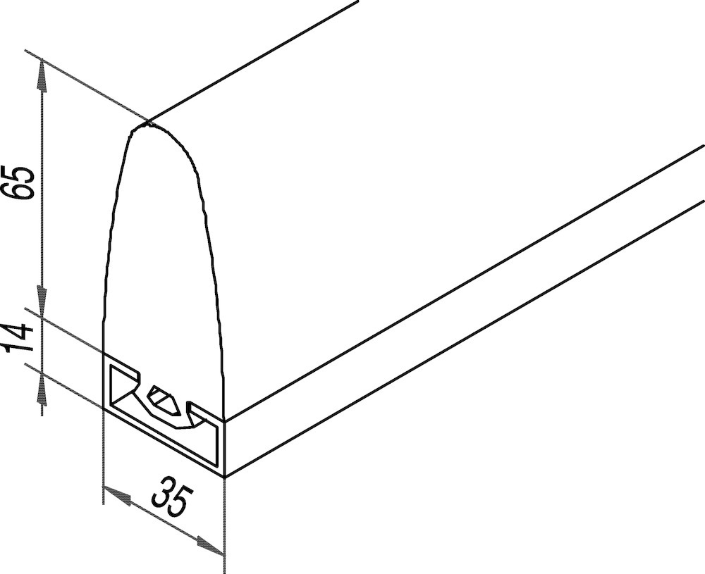 HELM Schiebetor weitere Nebenschließkante, Modellnummer: 80, Ausführung: mit C-Schiene, Material Schließkantenprofil: Gummi, Höhe Schließkantenprofil: 65 mm, Material C-Schiene: aluminium, Breite C-Schiene: 35 mm, Höhe C-Schiene: 14 mm