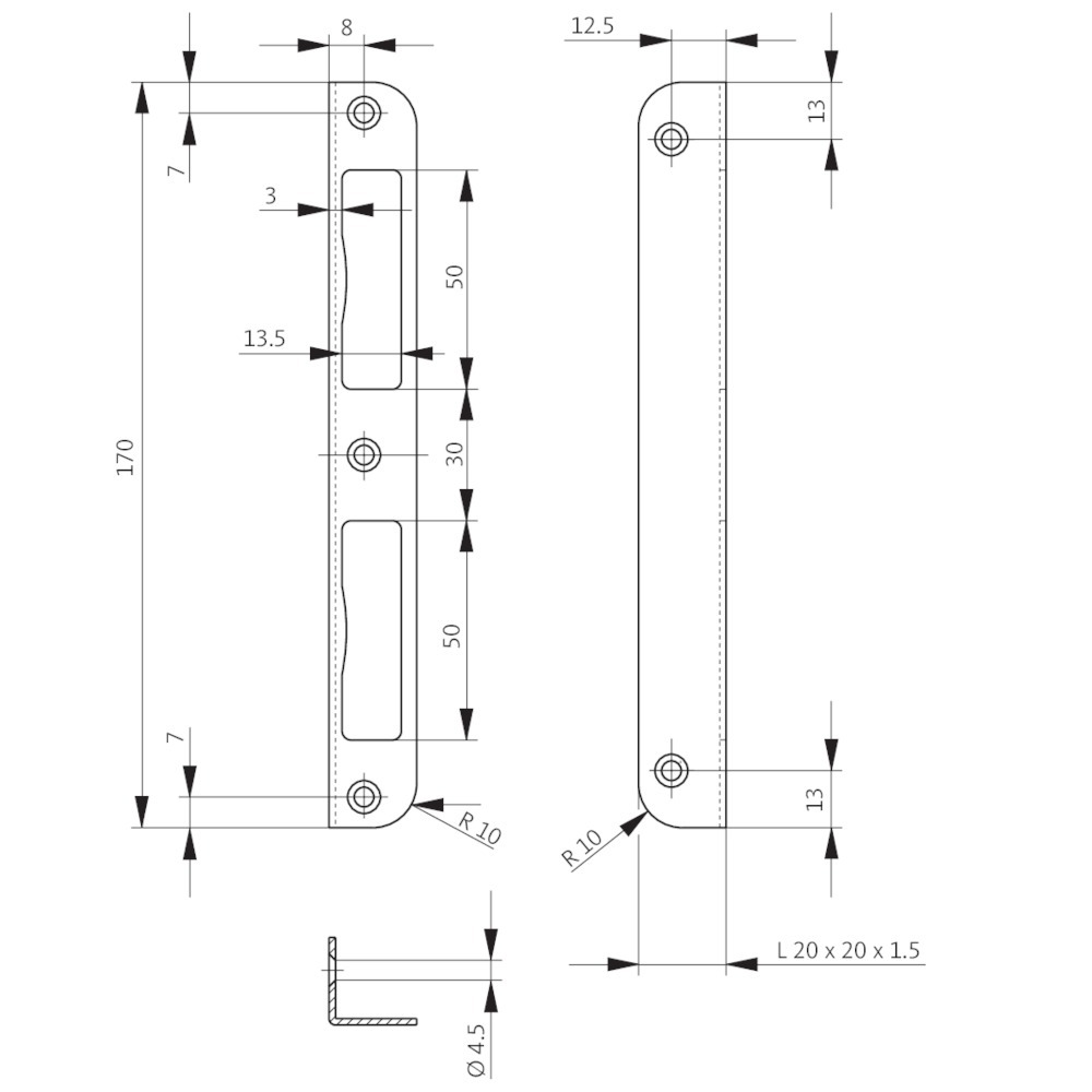 BKS Türrahmen Winkelschließblech, Modellnummer: S401, Material: edelstahl, Schließblechbreite: 20 mm, Schließblechausführung: rund, DIN-Richtung: DIN Links-Rechts, Farbton: edelstahl, Oberfläche: gebürstet, Türausprägung: Türe gefälzt, Türflügelanzahl: einflügelig, Befestigungsart: zum Aufschrauben, Schließblechlänge: 170 mm, Schließblechstärke: 1.5 mm, Schließblechtiefe: 20 mm, Türart: Abschlusstür, Rahmenwerkstoff: Holz, Kunststoff, Kunststoff, stahl, Ausführung: mit Fallen und Riegelausschnitt, Schraublochabstand: 8 mm